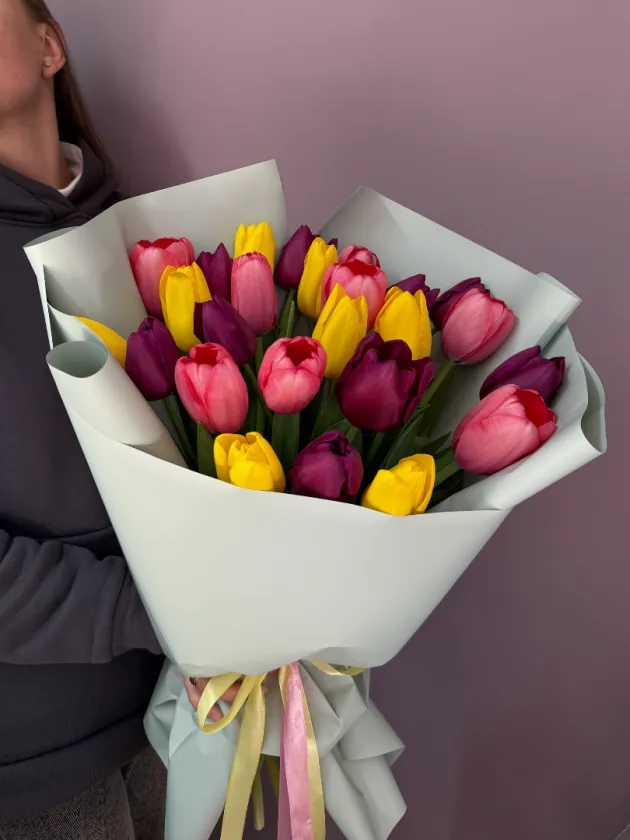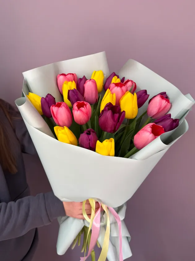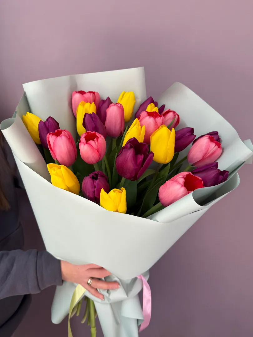 Яркий букет разноцветных тюльпанов подарит весеннее настроение🌷