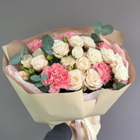 «Мэри» с кустовыми розами и гвоздиками