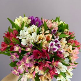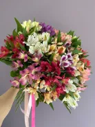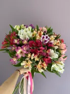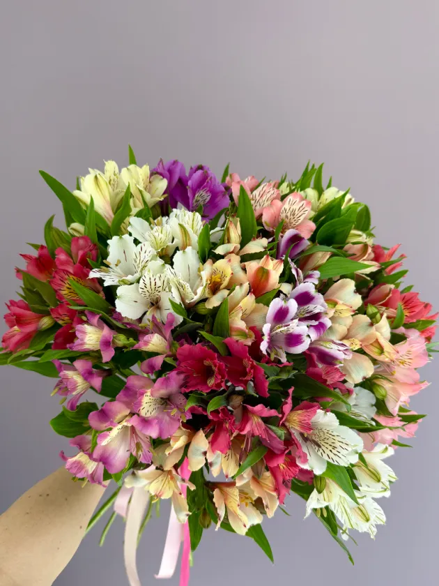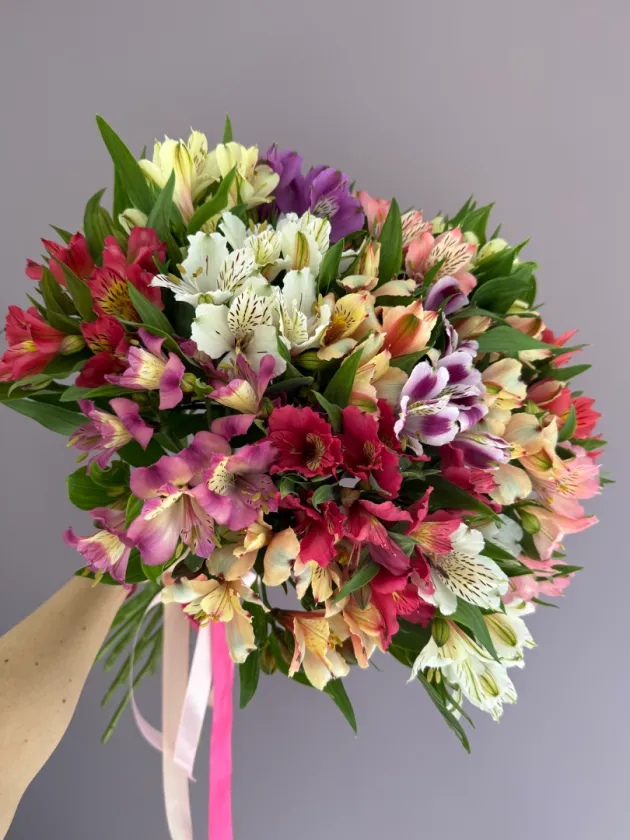 Букет из ярких разноцветных альстромерий подарит весеннее настроение и будет долго радовать получателя в вазе🌸