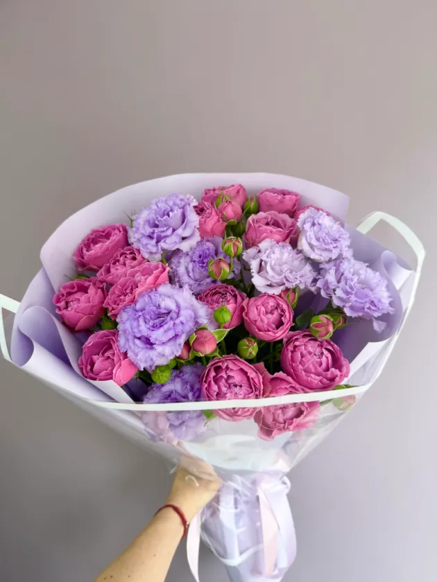 Пионовидные розы и эустома «Анжелика»