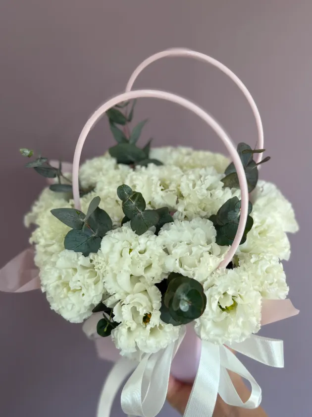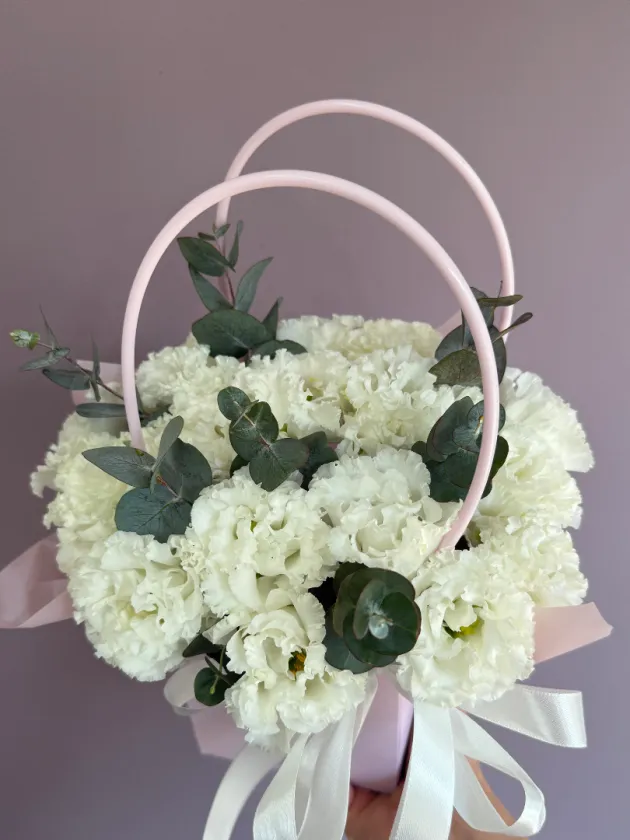 Композиция с эустомой и эвкалиптом