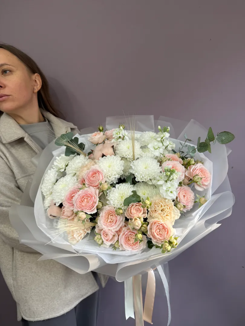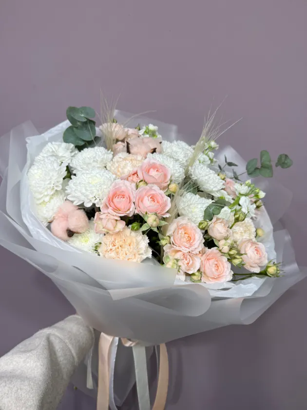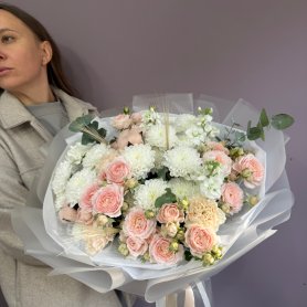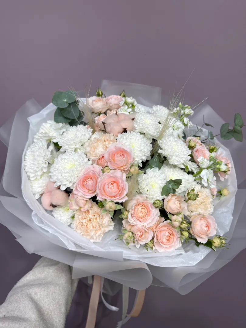 Букет сборный с розами и хризантемами «Весенняя капель»