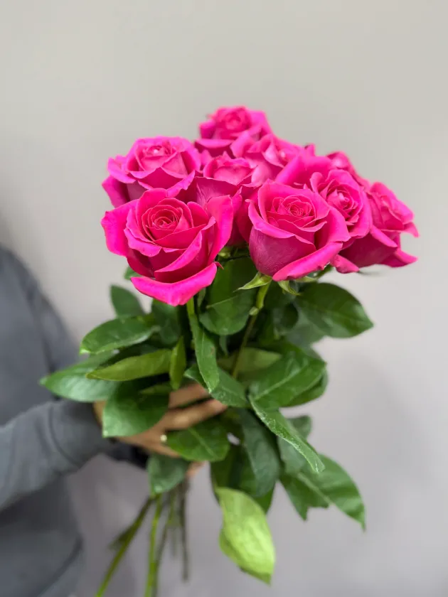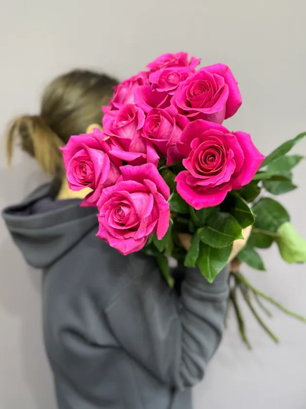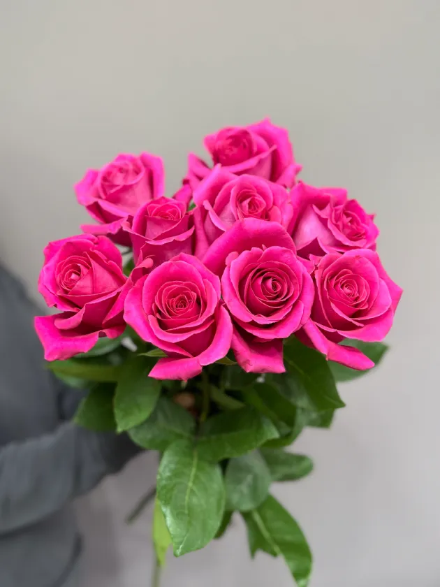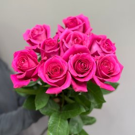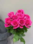Букет из ярких роз цвета фуксии с изумрудной зеленью - воплощение нежности и страсти. Этот букет станет ярким акцентом в интерьере и отличным подарком для возлюбленной. Яркие насыщенные бутоны никого не оставят равнодушным.