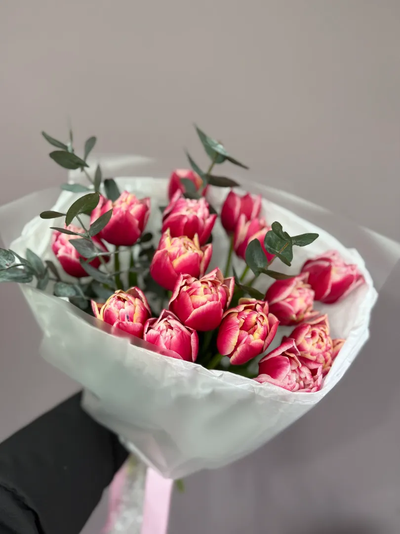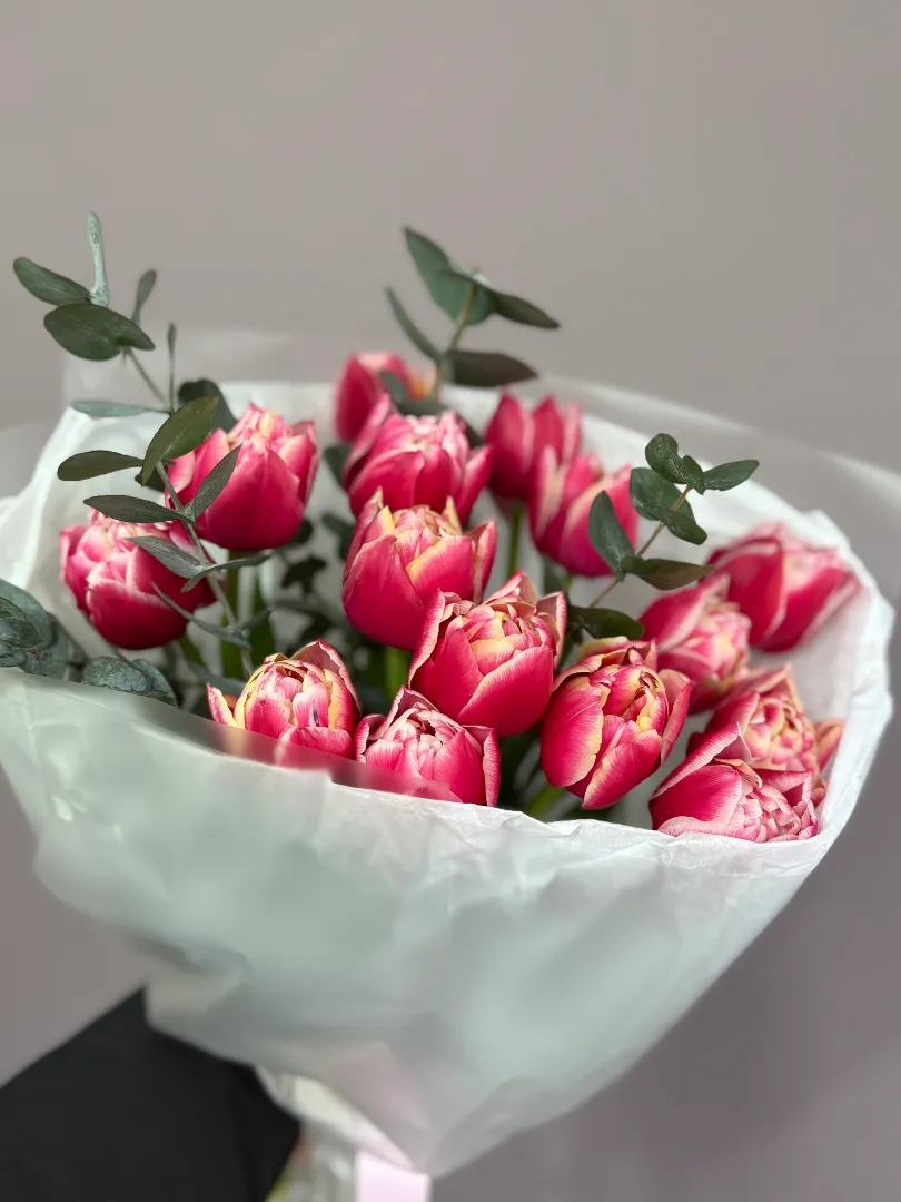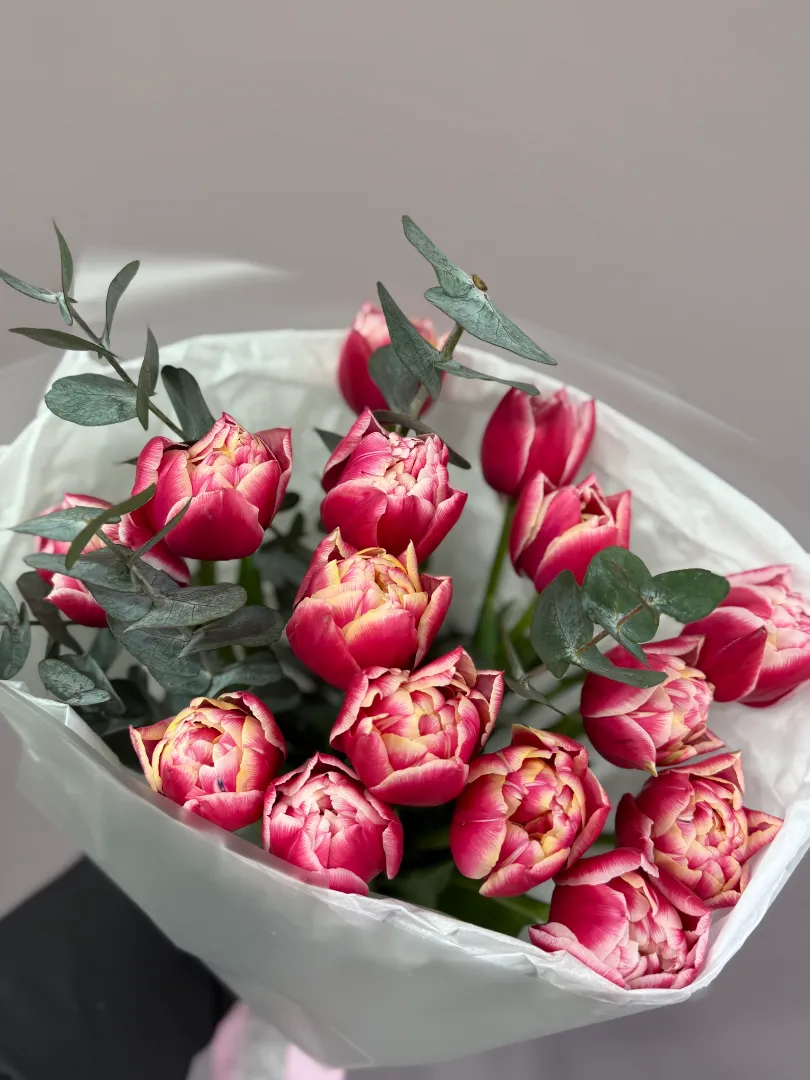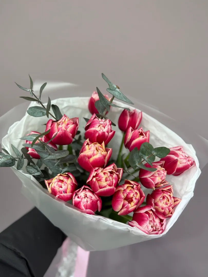Пионовидные тюльпаны и эвкалипт