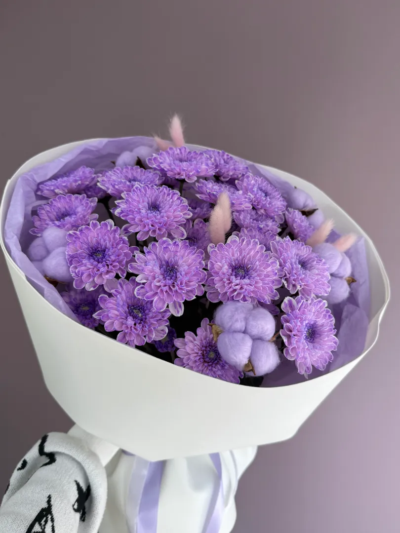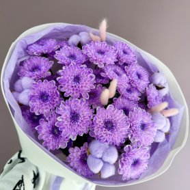 Букет из хризантем и сухоцветов «Черничный»