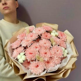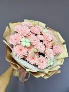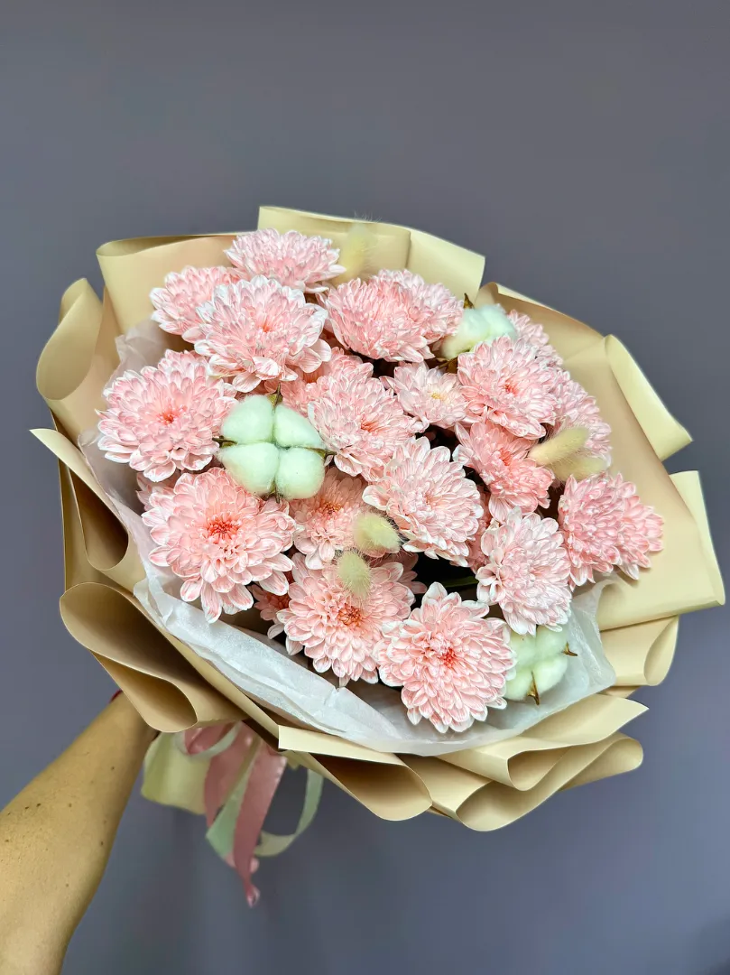 Букет из хризантем и сухоцветов «Персиковый джем»